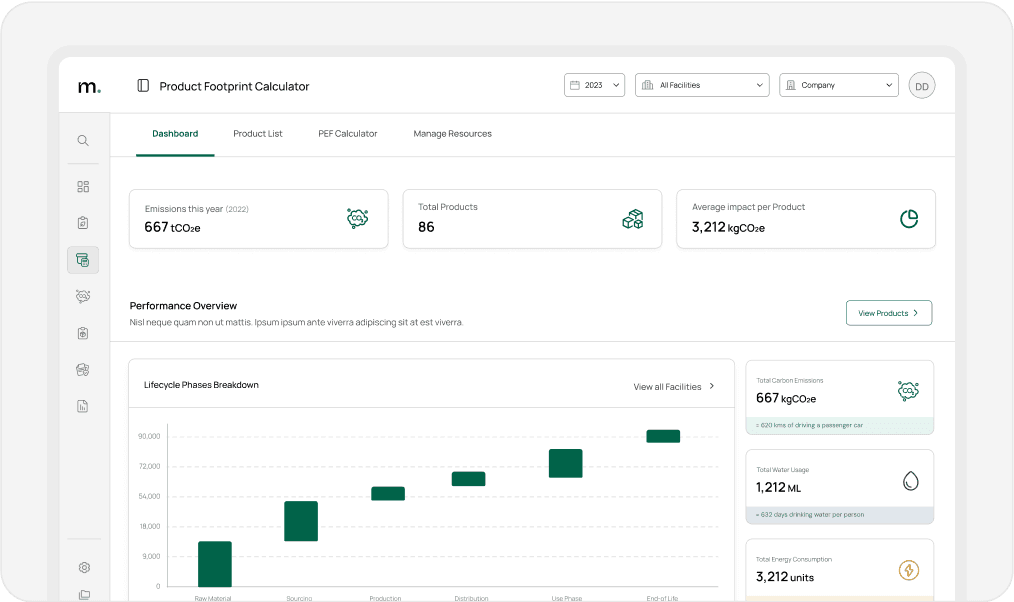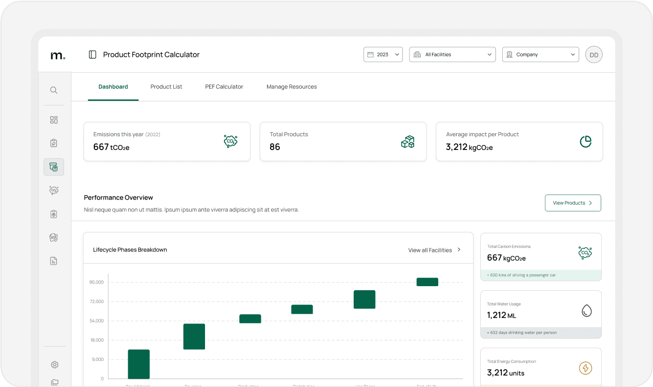 Esegui analisi LCA dettagliate su interi portafogli di prodotti in pochi minuti, senza bisogno di software complessi o lunghi processi di onboarding.