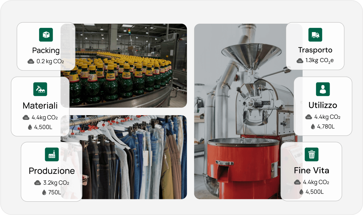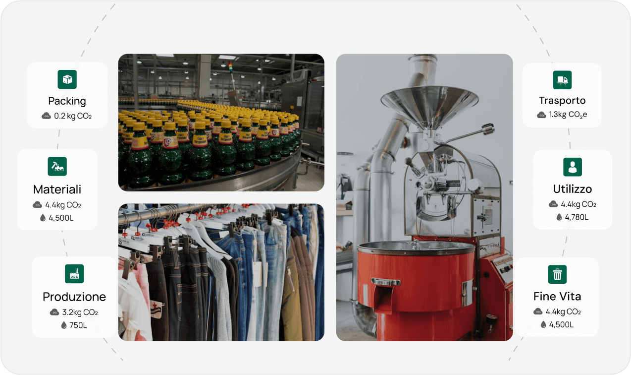 • Traccia l’impatto ambientale dalle materie prime allo smaltimento